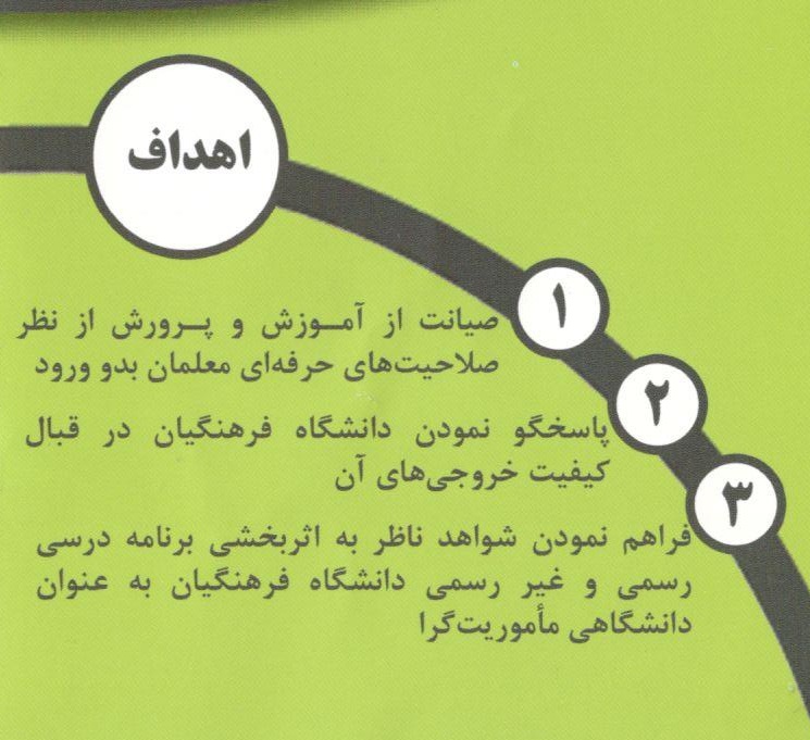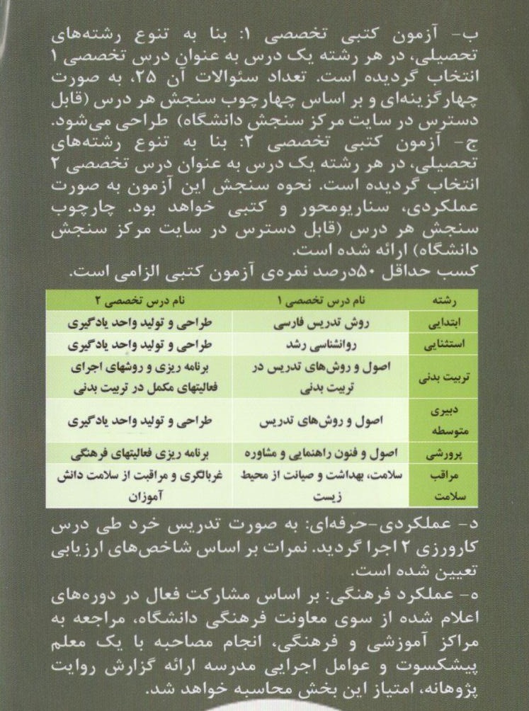 برای دریافت بورشور نحوه ارزشیابی صلاحیت های حرفه ای معلمی به پردیس های مربوطه مراجعه فرمایید.