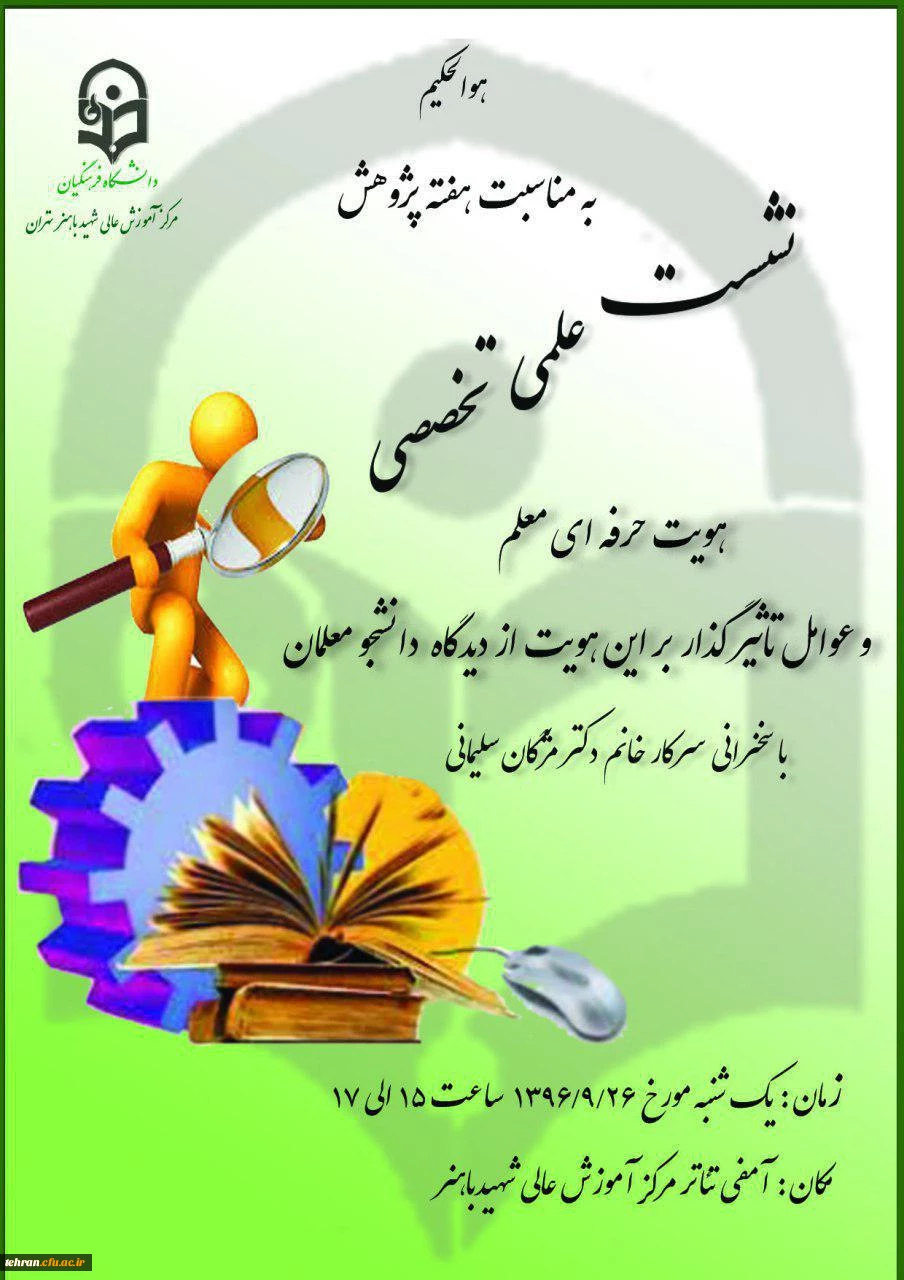 به مناسبت هفته پژوهش در مرکز آموزش عالی باهنر برگزار می شود: نشست علمی -تخصصی با موضوع هویت حرفه ای معلم 2