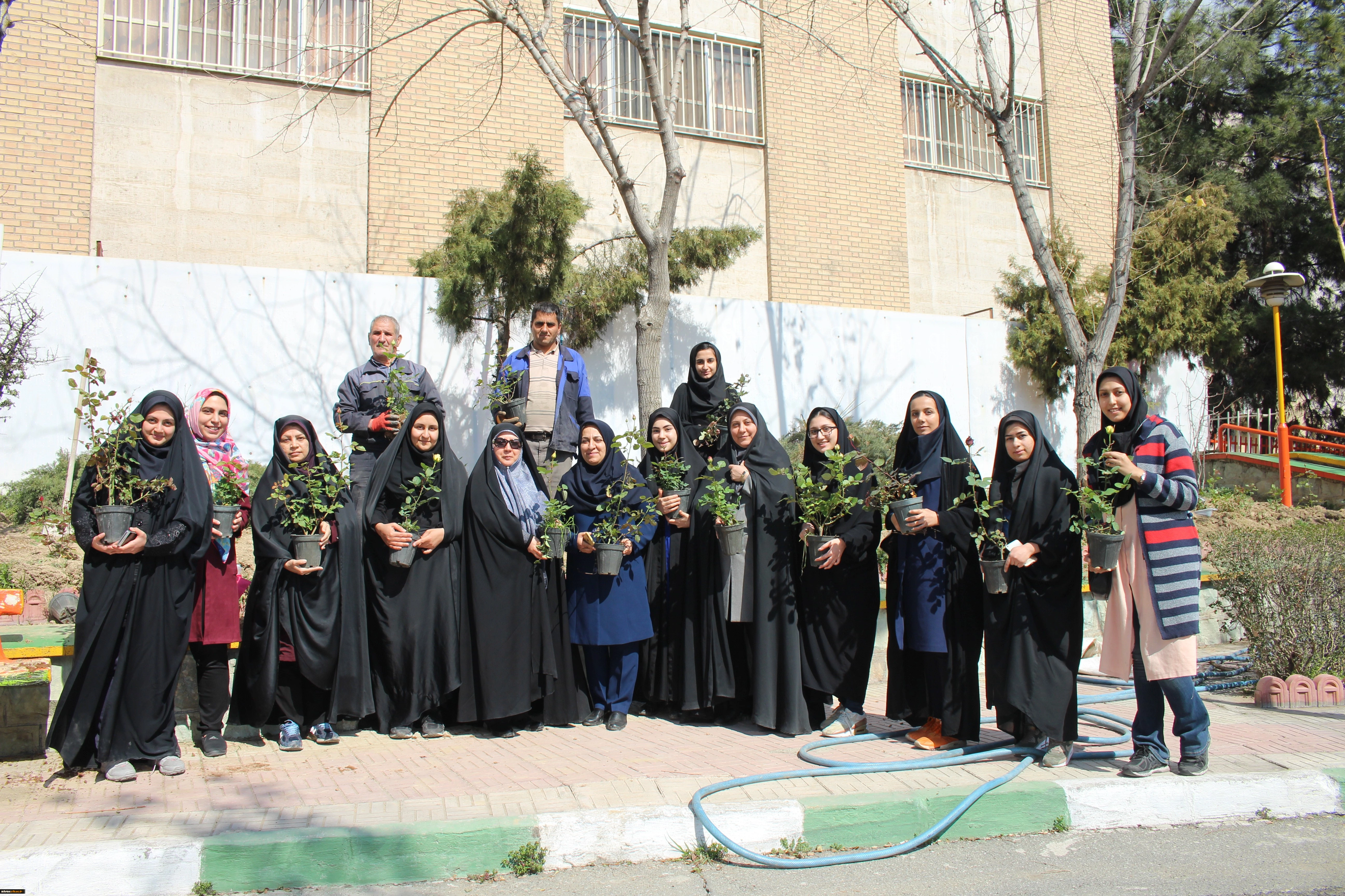 کاشت بوته گل رز در فضای سبز پردیس نسیبه