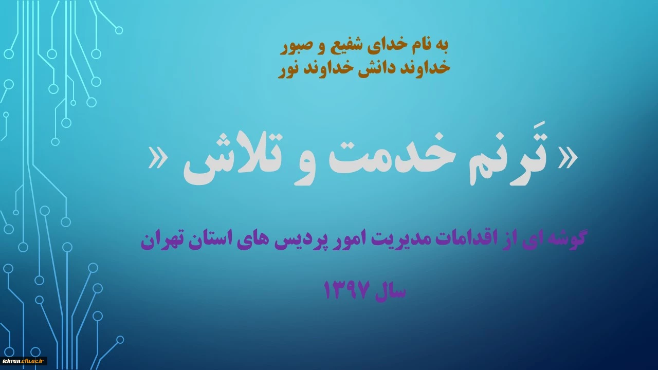 ترنم خدمت و تلاش گوشه ای از اقدامات مدیریت امور پردیسهای استان تهران 2