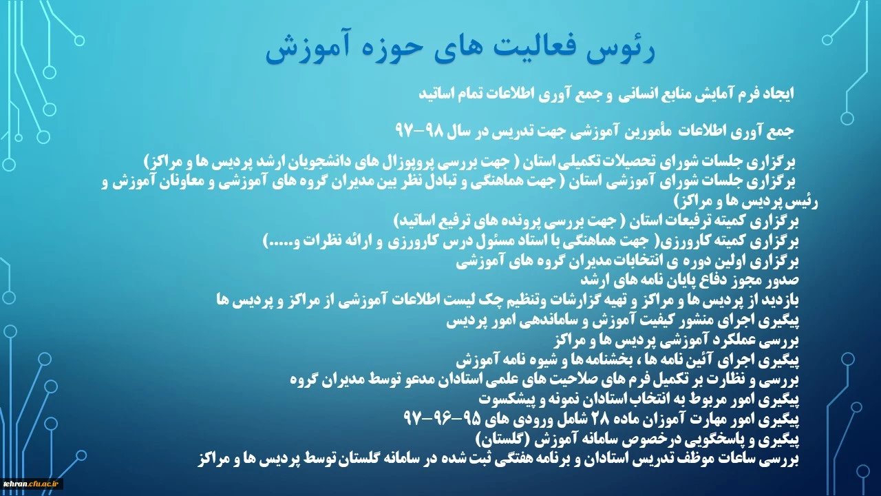 گوشه ای از اقدامات مدیریت امور پردیسهای استان تهران 2