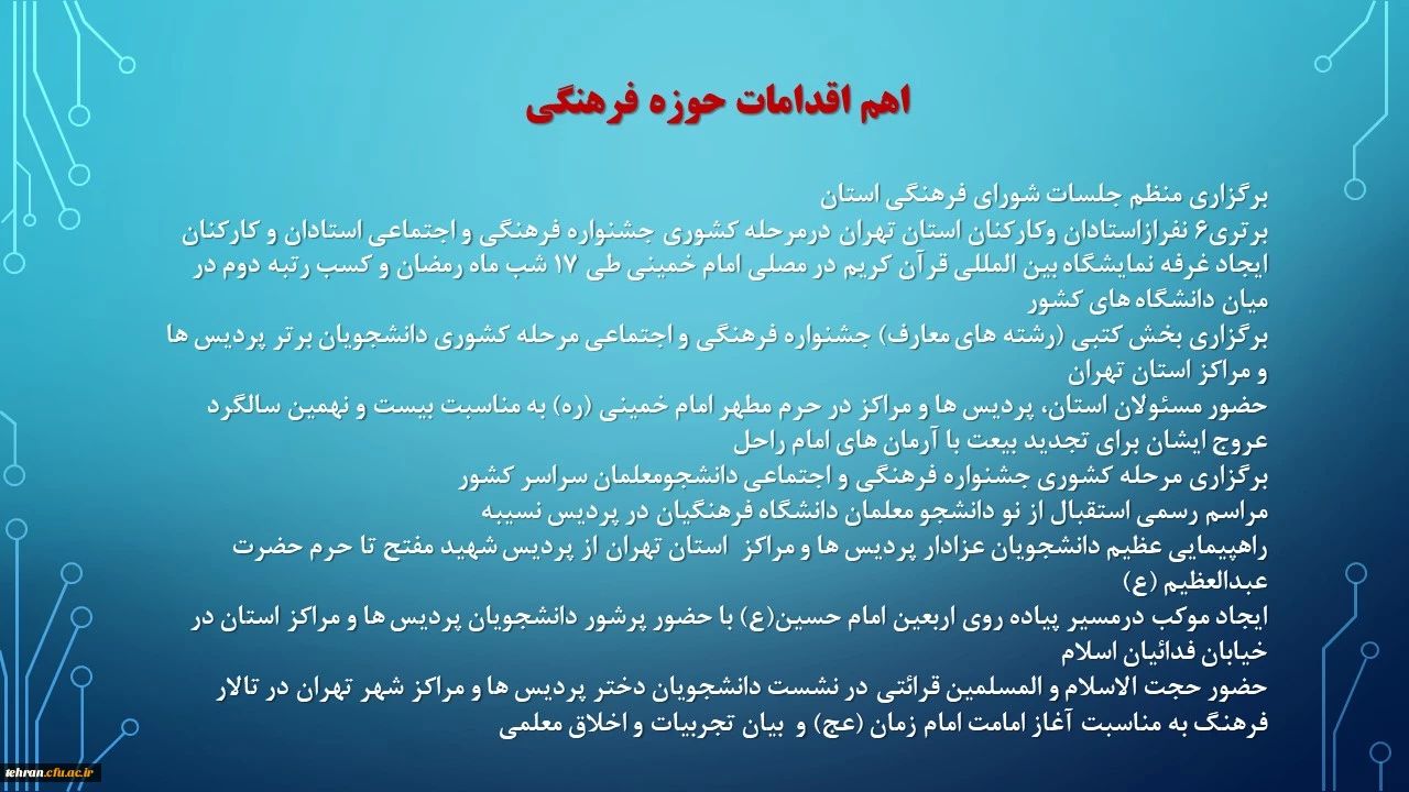 ترنم خدمت و تلاش گوشه ای از اقدامات مدیریت امور پردیسهای استان تهران 2