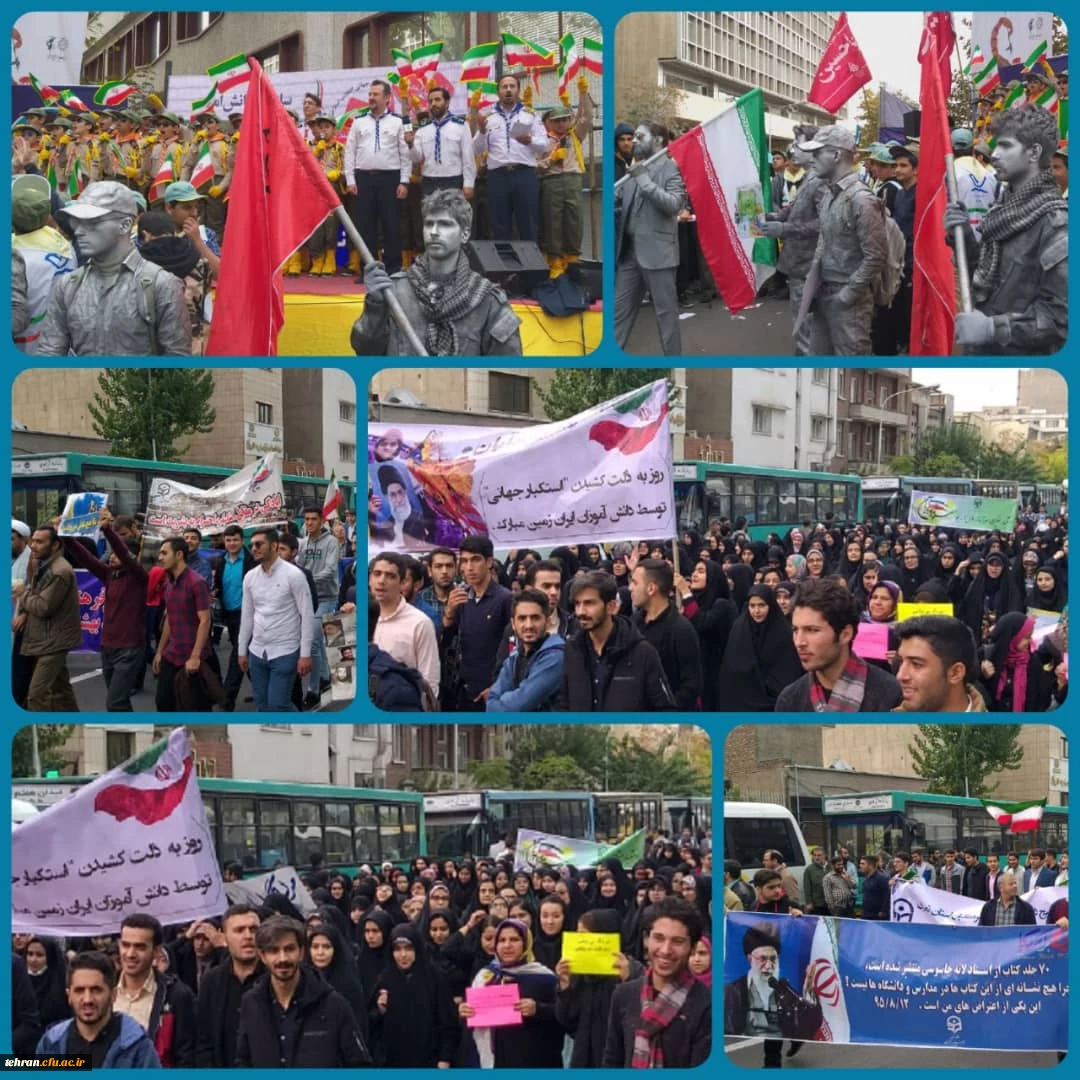 حضور گسترده دانشجویان، مسئولان، استادان و کارکنان پردیس ها، مراکز و مدیریت استان تهران در راهپیمایی 13 آبان 4