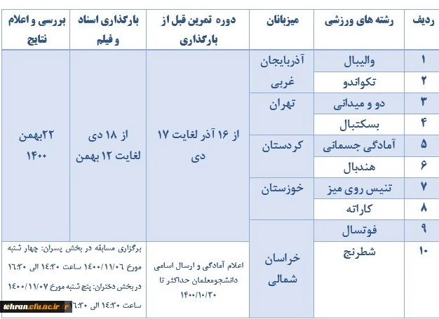 شرکت در المپیاد ورزش های قهرمانی در دو رشته ورزشی ویژه دانشجومعلمان دختر و پسر 2