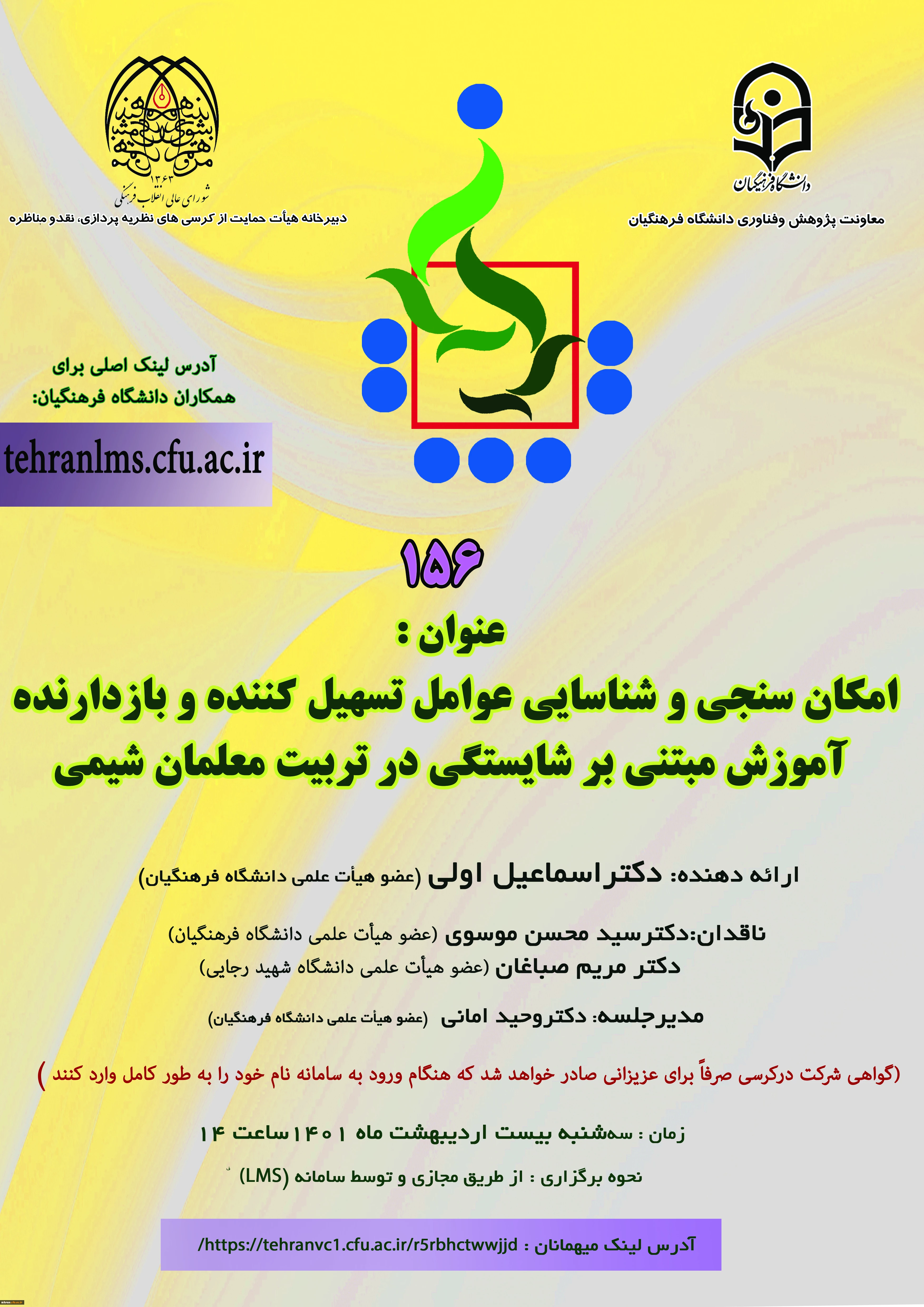 امتیاز دهید : یکصد و پنجاه و ششمین کرسی علمی ترویجی برگزار می شود. 2 دوشنبه 19 اردیبهشت 1401 ساعت 10:26