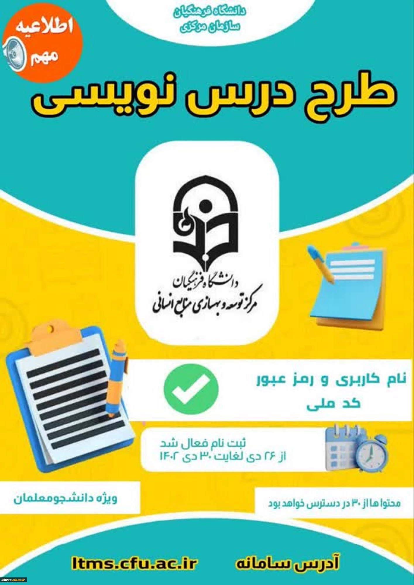 مرکز توسعه و بهسازی منابع انسانی برگزار می کند: آزمون " طرح درس نویسی" (ویژه دانشجومعلمان) 2