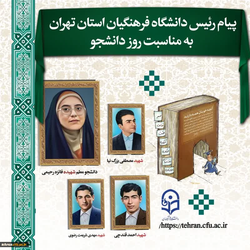 امتیاز دهید : پیام رئیس دانشگاه فرهنگیان استان تهران بمناسبت روز دانشجو 2 جمعه 16 آذر 1403 ساعت 15:57