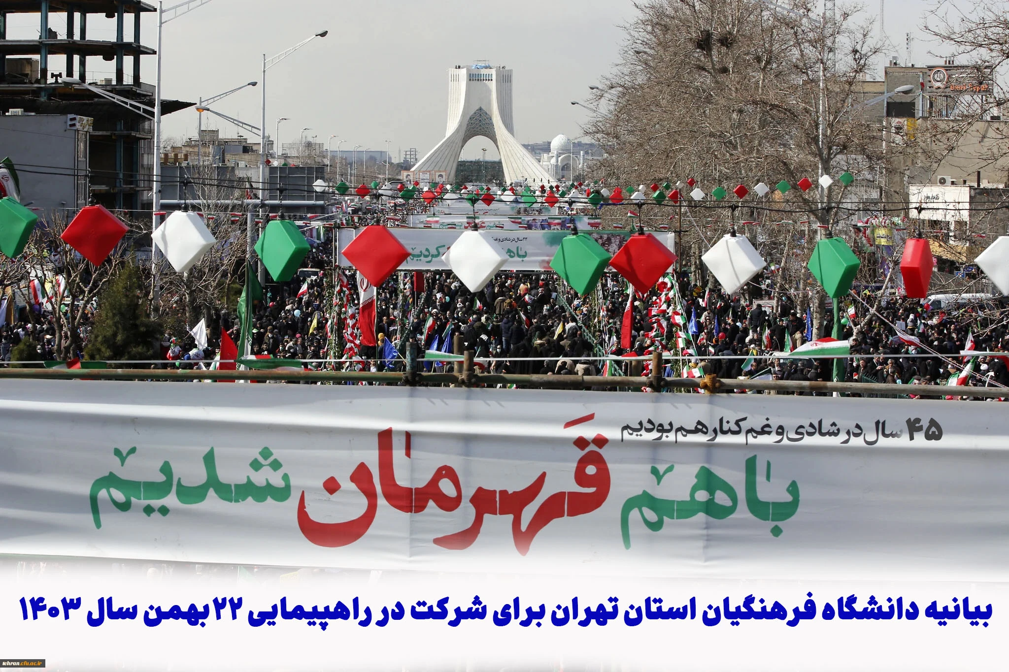 دعوت از دانشگاهیان به شرکت در راهپیمایی 22 بهمن با حضور در غرفه مرکزآموزش عالی شهید شرافت 3