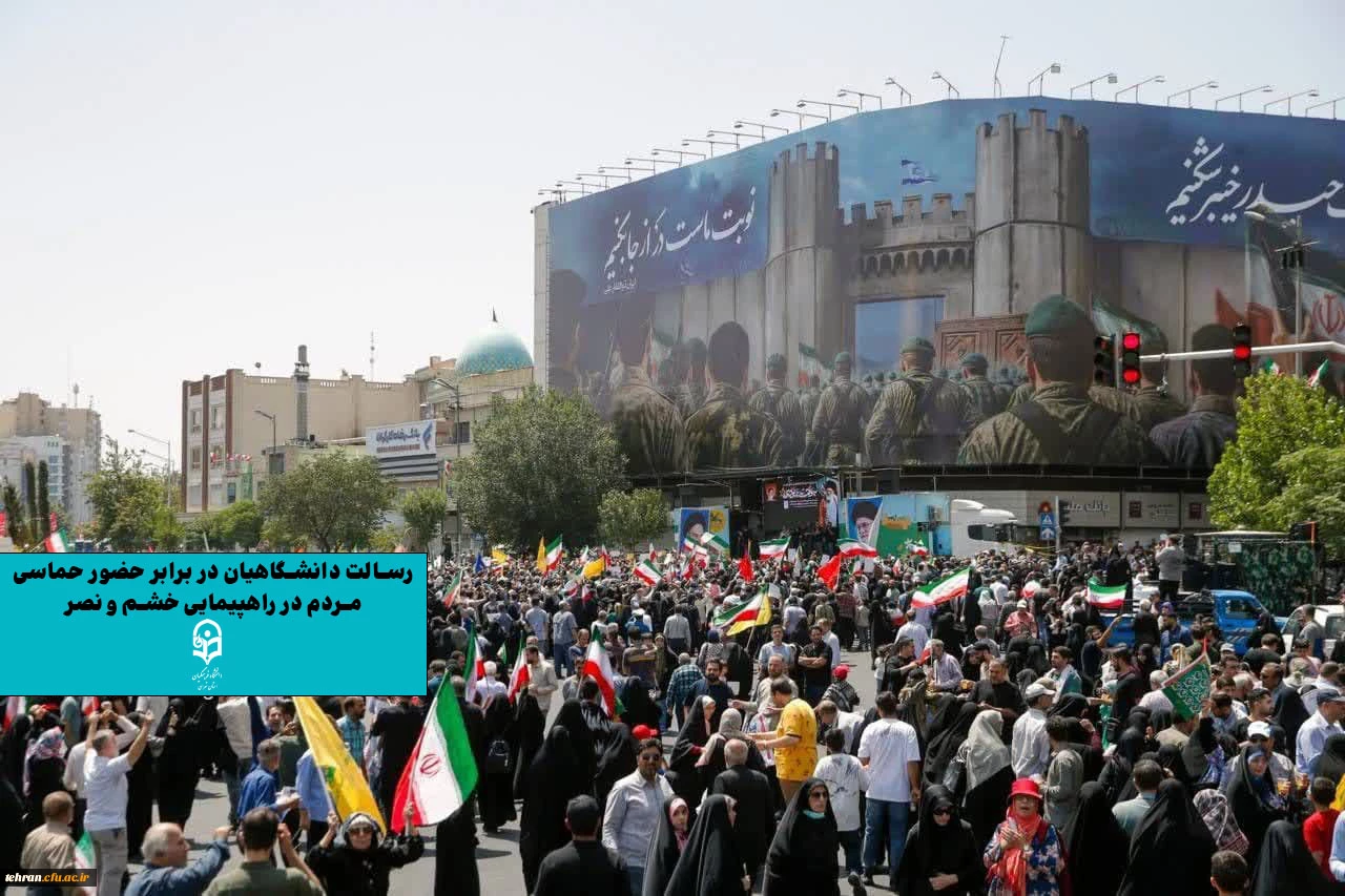 امتیاز دهید : رسالت دانشگاهیان در برابر حضور حماسی مردم در راهپیمایی خشم و نصر 2 جمعه 30 خرداد 1404 ساعت 21:18